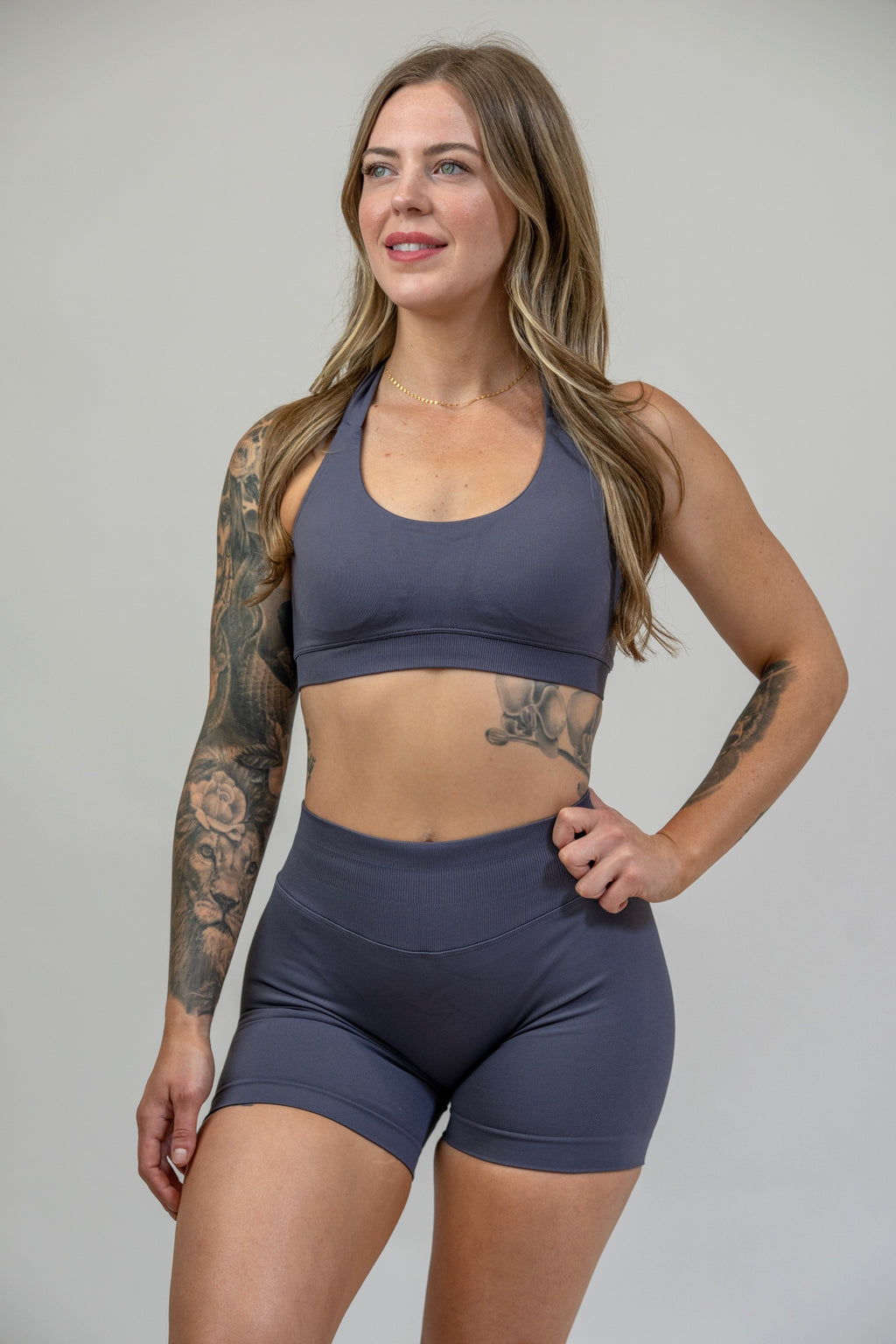 Our Contour halter is designed to contour and flatter your physique. This bra features a completely open back, allowing the back gains to show while supporting you in all the right places.