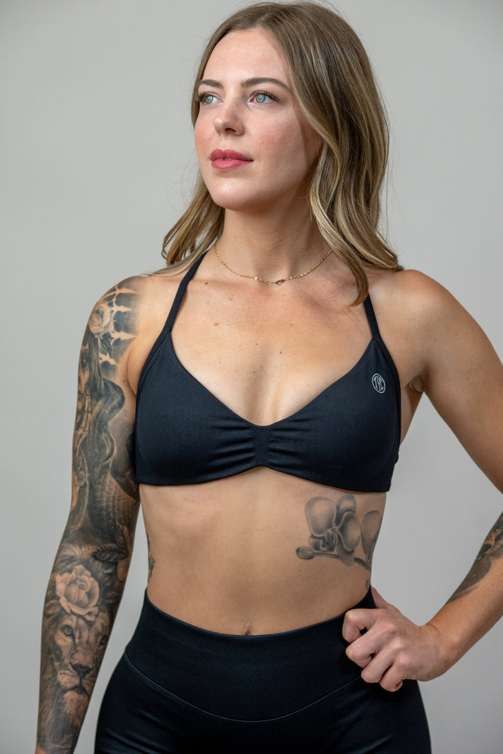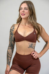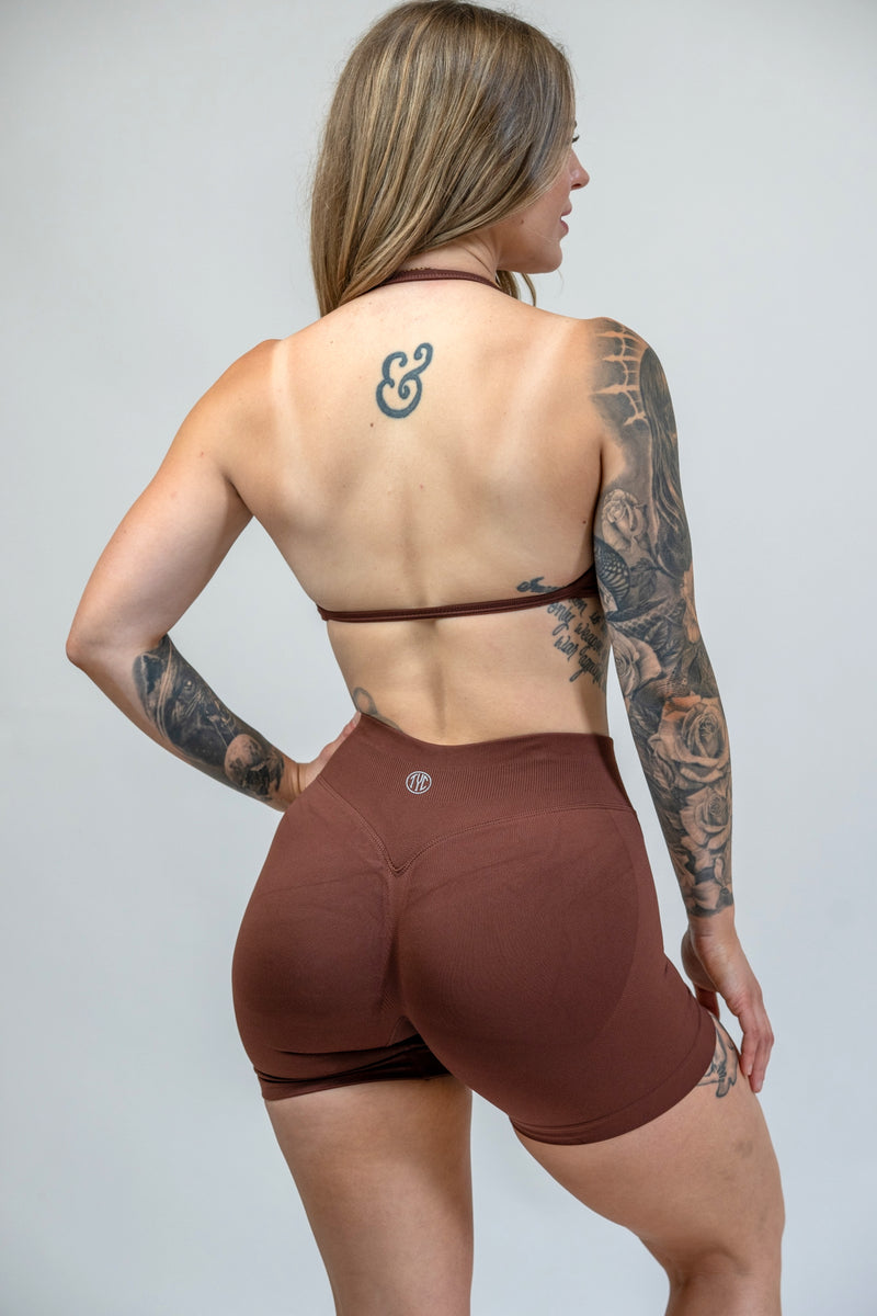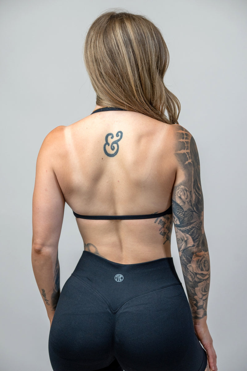 Our Contour Mini Halter has a flattering strappy halter with an open back and removable pads. It provides a light weight feel, ready for any workout. Pair it with our other contour items for the perfect gym fit.