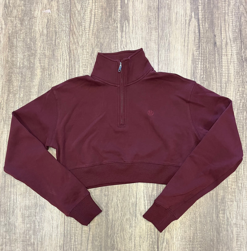 Luxury Loungewear Cropped Zip sweater- Burgundy