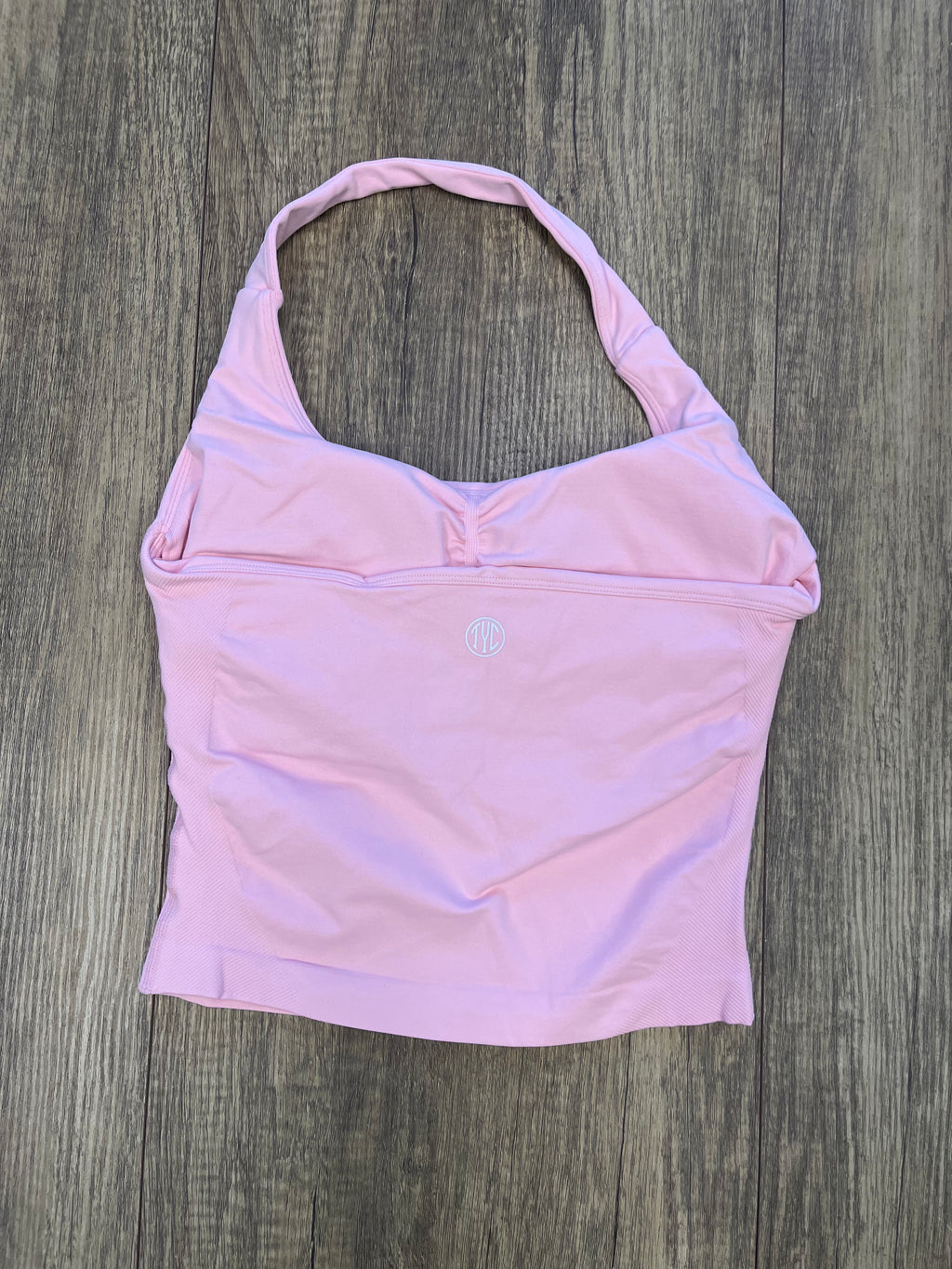 The Seamless Halter Tank has a flattering strappy halter with an open back and removable pads. It provides the ultimate comfort with it's full length look and built in bra, ready for any workout.